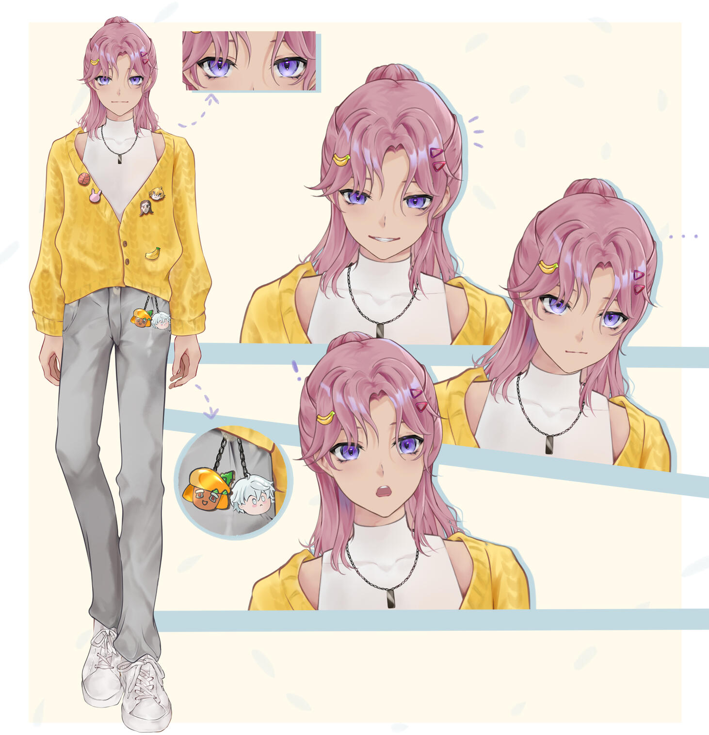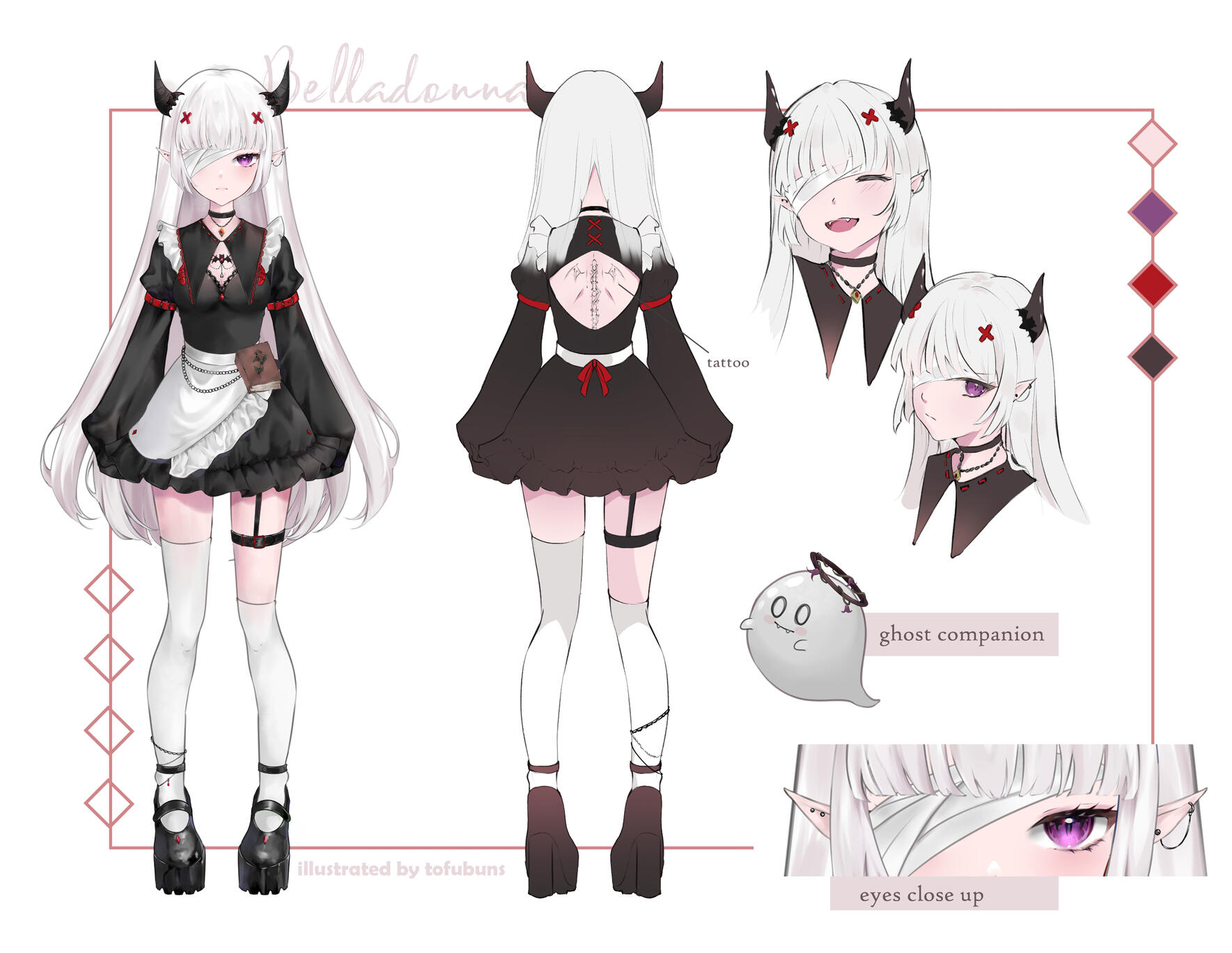 CHARACTER DESIGN/REFERENCE SHEET (depending on composition)✿$30 sheet: for VTUBERS ONLY with existing model commission. Full body art will be of LIVE2D Models, with 2 expressions included.✿$350 sheet: includes two full bodies (front and simple colored back view) + 2 SIMPLE COLORED headshots. Character will be in NON A / DYNAMIC/UNIQUE POSE.✿$250 sheet: includes two full bodies (front and simple colored back view) + 2 SIMPLE COLORED headshots. Character will be in front facing A POSE.✿ Additional outfits, full render of all elements, accessories and additional art will start from $20✿ FREE elements: text + color palette.Note: This pricing applies only applies to requests with an EXISTING CHARACTER DESIGN. If you'd like me to design a character for you and/or want to use towards commercial purposes, please click here for additional information and pricing.